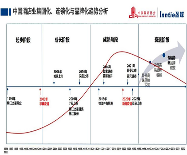 在中国酒店业45年的发展周期里,经历了起步阶段、成长阶段、成熟阶段,正处于周期性衰退期。尤其是在过去三年,尽管中国连锁酒店市场仍保持了稳定增长,但中国酒店业普遍存在的结构性发展问题暴露无遗——连锁酒店市场中的头部企业增长仍较快,中小型酒店品牌多尚未寻得有效的突围之法;那些在过去被关掉的单体酒店的生存能力、抗风险和反脆弱能力普遍较差。