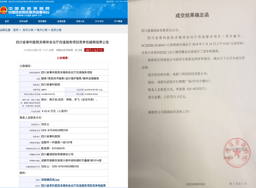 title三网讯中标四川省骨科医院多媒体会议厅改造服务项目